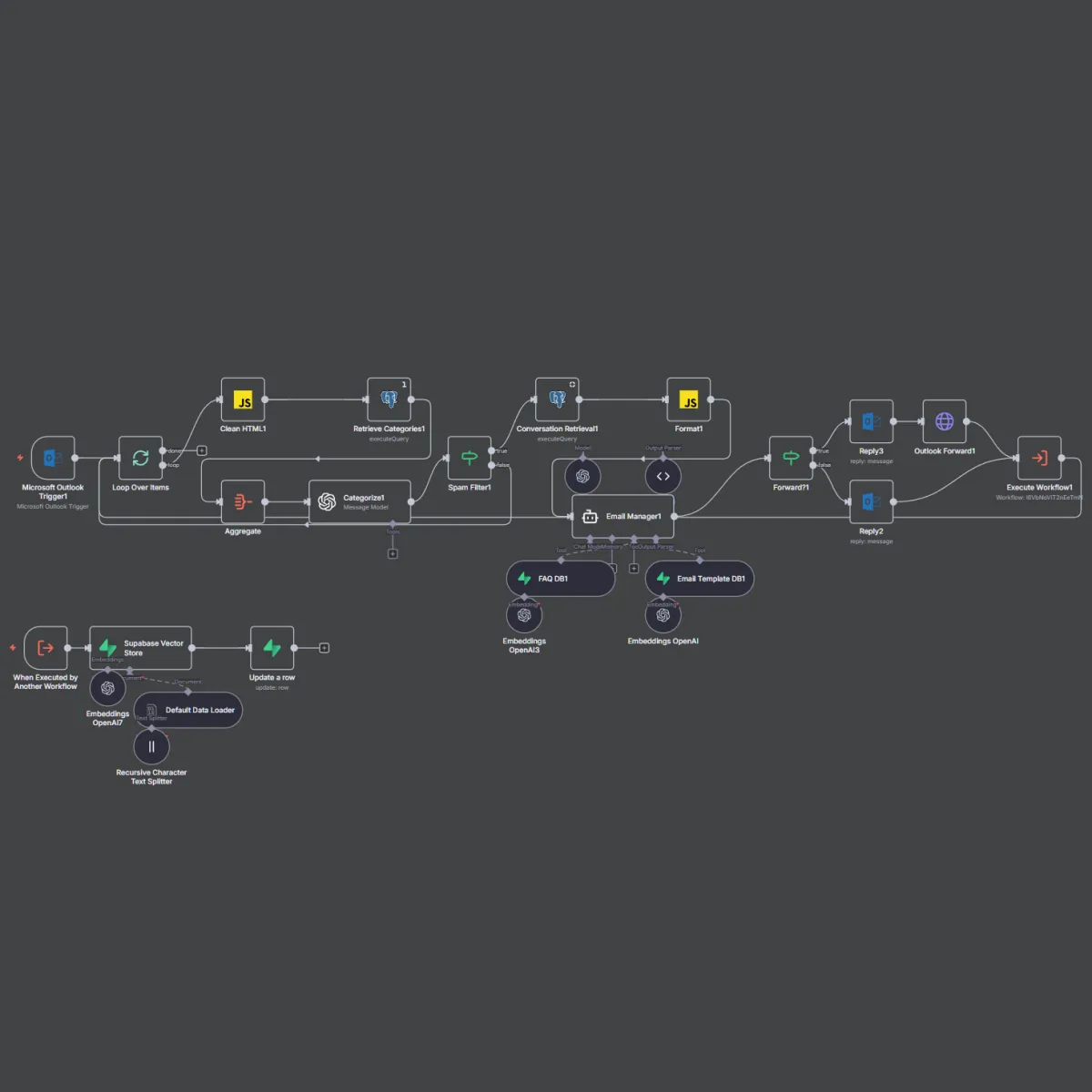 This automation reads incoming emails, searches your FAQ or knowledge base using an AI agent, and automatically delivers accurate responses when a match exists. If the AI can’t find a reliable answer, it escalates the email to a human while preserving full context.