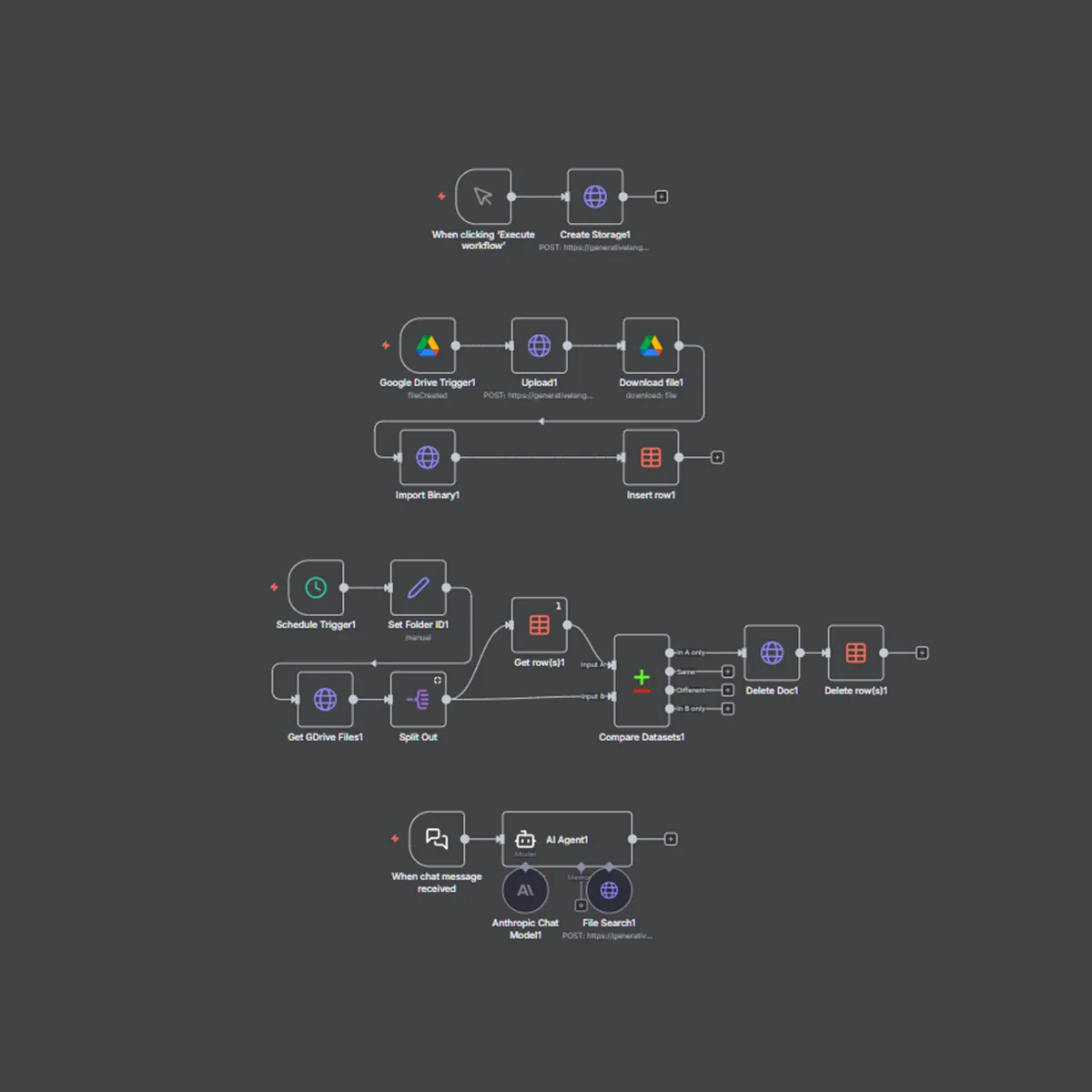 The automation uses Gemini File Search and n8n to create an easy two-way sync between Google Drive and the cloud storage, removing all technical complexity. It delivers RAG functionality without needing to build any embeddings or vector database systems.